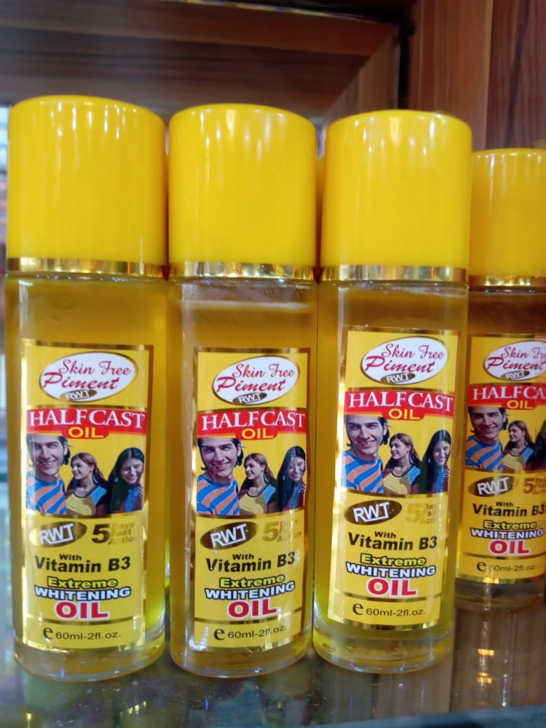 RWT Halfcast Oil is a premium skincare oil designed to deeply hydrate and brighten your skin. Infused with nourishing and lightening ingredients, it works to reduce blemishes, even out skin tone, and restore your skin’s natural glow. The lightweight formula absorbs quickly without leaving a greasy residue, making it ideal for all skin types. Perfect for daily application, this oil provides long-lasting moisture while enhancing your skin’s texture and elasticity. Whether you’re targeting dryness, uneven tone, or dullness, RWT Halfcast Oil offers an effective solution for radiant, healthy skin.