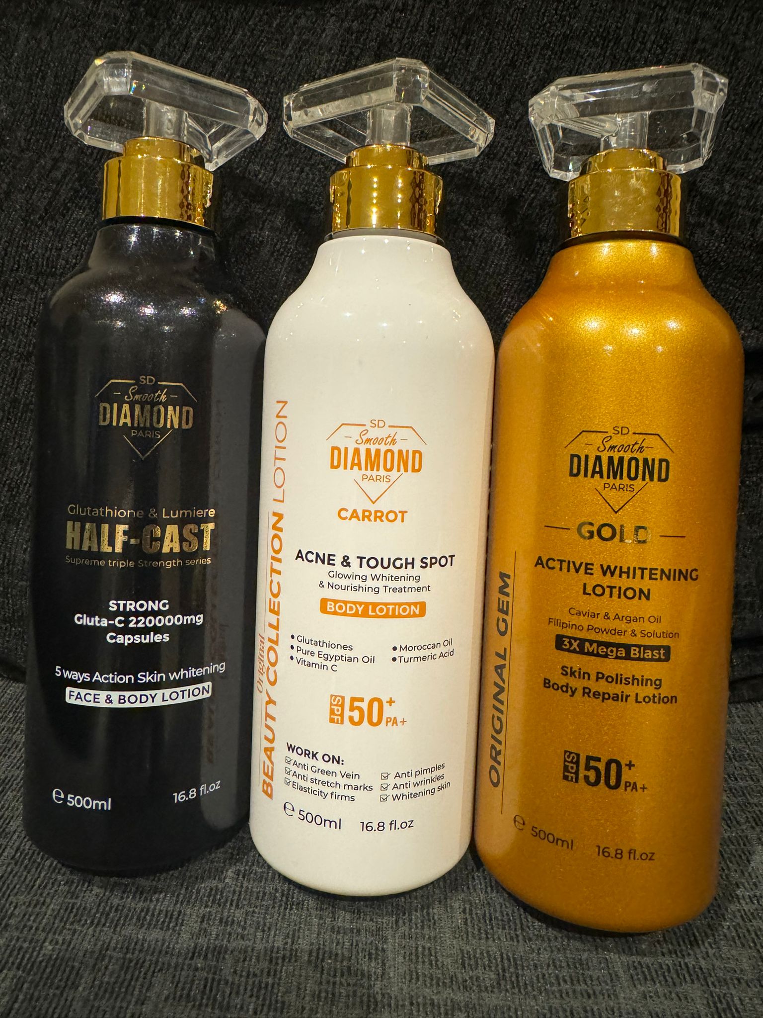 Smooth Diamond Gold Lotion combines the luxurious benefits of caviar extract and argan oil to deliver unparalleled skin hydration and rejuvenation. Caviar extract is rich in vitamins and amino acids, promoting skin elasticity and radiance, while argan oil deeply nourishes and moisturizes, enhancing skin softness and smoothness. This lotion helps reduce fine lines, improve skin texture, and restore a youthful glow. Lightweight and non-greasy, it absorbs quickly, providing long-lasting hydration. Ideal for daily use, Smooth Diamond Gold Lotion is a premium skincare solution for radiant, healthy-looking skin.